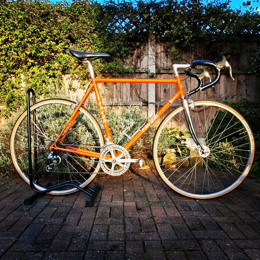 Now, I’m reimagining it on a modern Cannondale SuperSix carbon frame. Why? Because it’s one of the few carbon frames with elegant, slim tubing that echoes the beauty of steel, without the oversized bulk you see on most modern bikes. The build will carry a heritage-inspired orange and silver repaint, mirroring the Favori, but finished with: