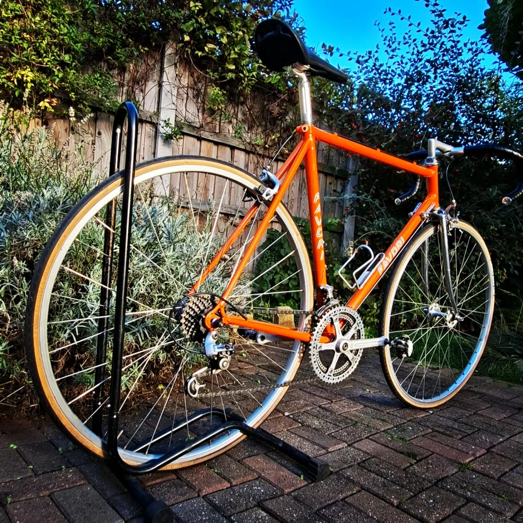 My latest project is all about bridging eras. Back in 1976, Ellis Briggs built my hand-crafted Favori — Reynolds 531 steel, slim tubing, and timeless lines. That classic look has always inspired me.